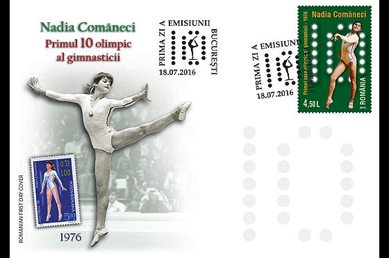 Plic prima zi PRIMUL 10 OLIMPIC AL GIMNASTICII, NADIA COMĂNECI – Romfilatelia-O lume intr-un timbru