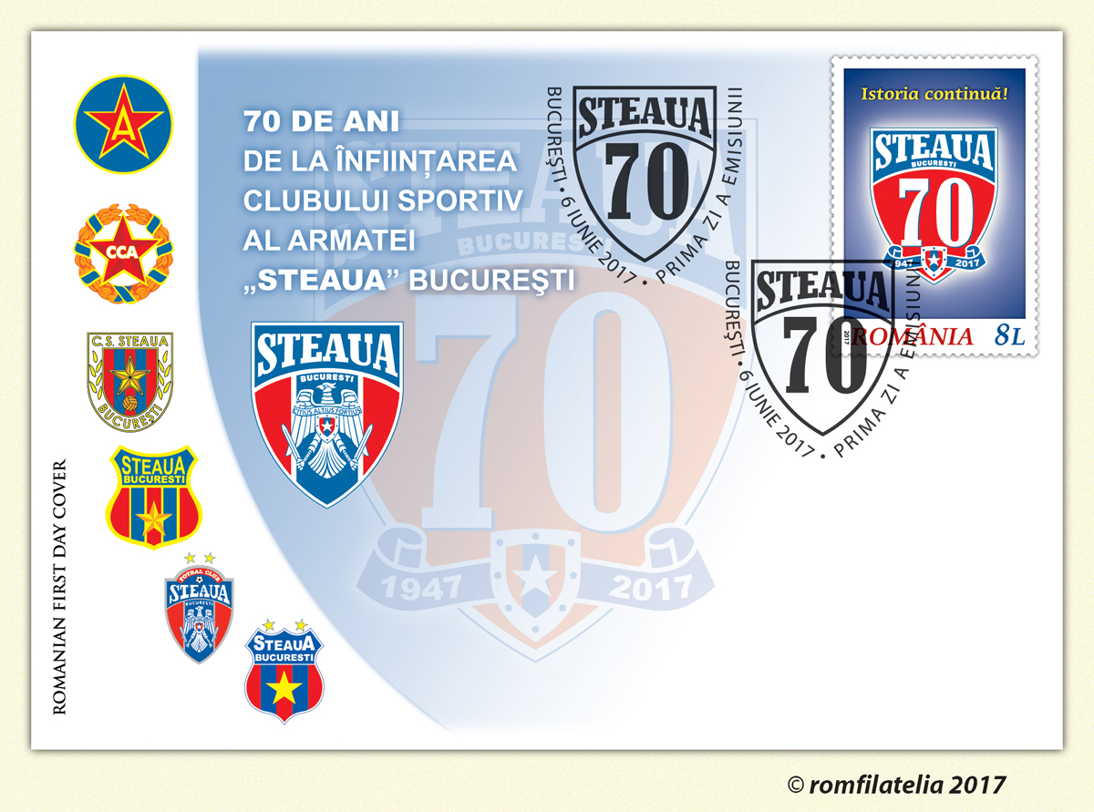 Plic prima zi STEAUA, 70 DE ANI DE LA ÎNFIINŢARE – Romfilatelia-O lume intr-un timbru