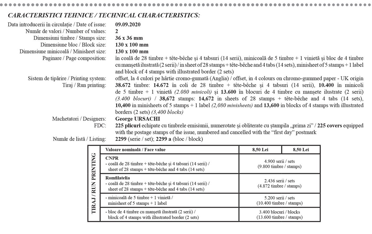 Pe cele două timbre ale emisiunii, cu valoarea nominală de 8,50 lei, sunt ilustrate portrete ale pictorului Rafael Sanzio.
