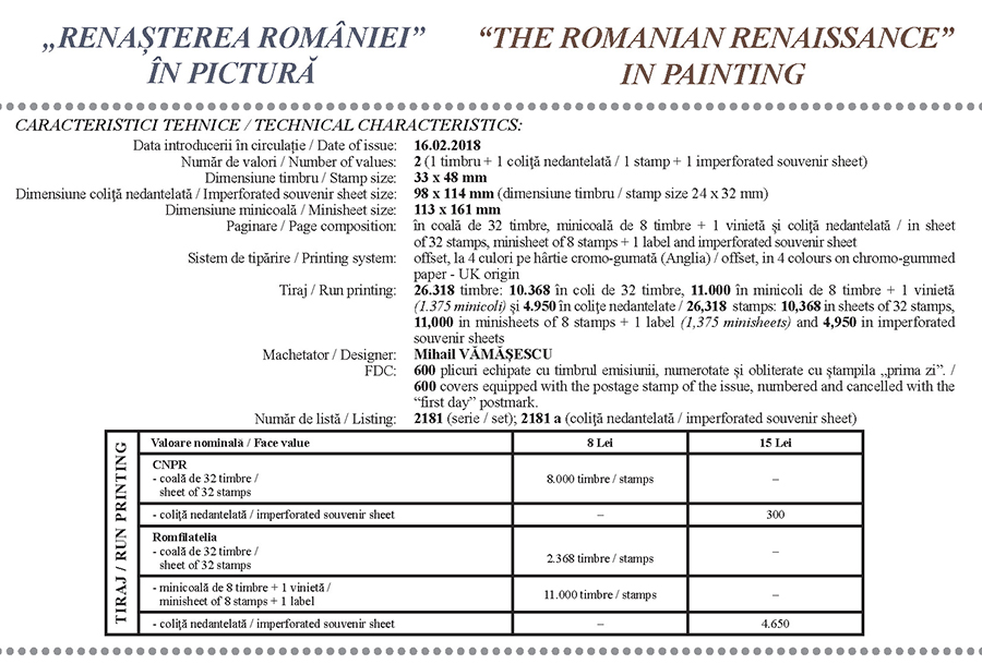 Cu ocazia celei de-a 170-a aniversări a Revoluţiei de la 1848, Romfilatelia introduce în circulaţie emisiunea de mărci poștale „Renașterea României” în pictură.