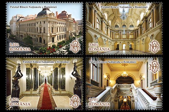 Set 4 valori Arhitecturã: Palatul Bãncii Naționale a României – Romfilatelia-O lume intr-un timbru