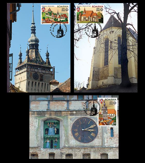 Set carti postale maxime CENTRUL ISTORIC SIGHIȘOARA – PATRIMONIU MONDIAL UNESCO – Romfilatelia-O lume intr-un timbru