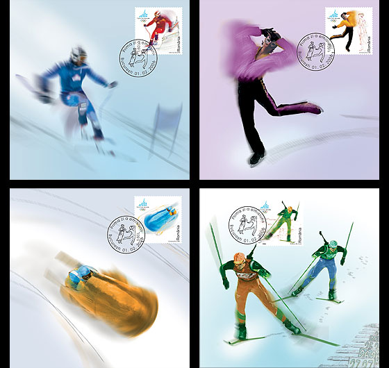Set carti postale maxime Jocurile Olimpice de Iarnă – Torino 2006 – Romfilatelia-O lume intr-un timbru