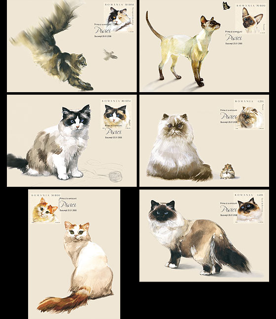 Set carti postale maxime Pisici – Romfilatelia-O lume intr-un timbru