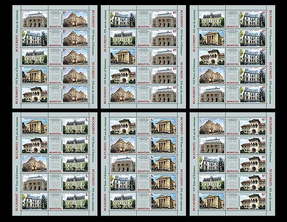 Set minicoli BUCUREȘTI, 555 ANI DE EXISTENȚÃ – Romfilatelia-O lume intr-un timbru