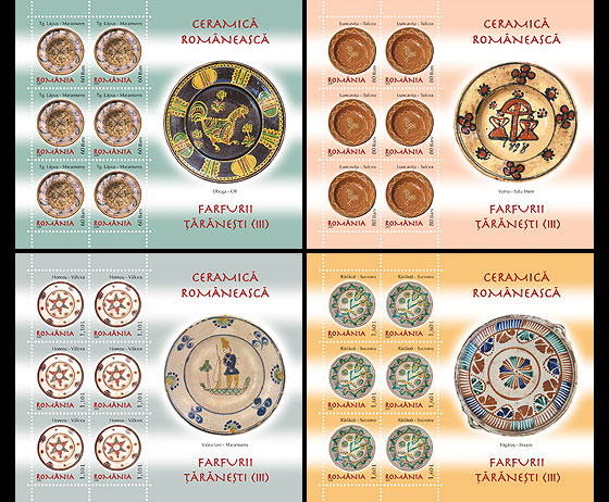 Set minicoli CERAMICÃ ROMÂNEASCÃ – Farfurii țãrãneşti (III) – Romfilatelia-O lume intr-un timbru