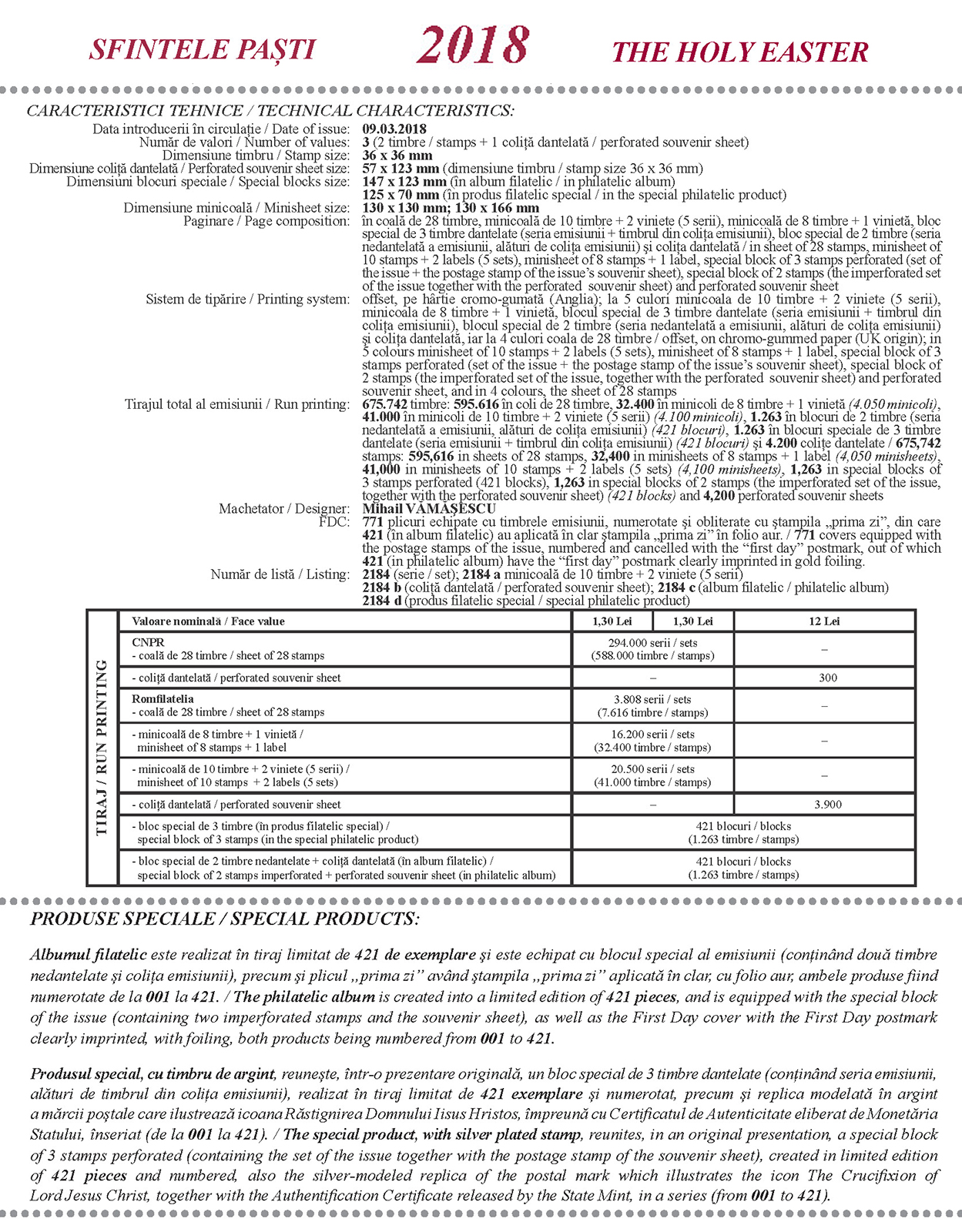 SFINTELE PAȘTI 2018 – Romfilatelia-O lume intr-un timbru