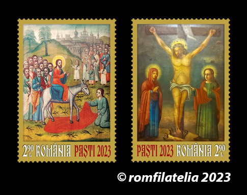 Romfilatelia vestește Învierea Domnului printr-o nouă emisiune de mărci poștale intitulată Sfintele Paști 2023, care va fi introdusă în circulație vineri, 10 martie. Emisiunea este compusă din 2 timbre cu aceeași valoare nominală, de 2,90 lei, ce ilustrează icoanele „Intrarea Domnului Iisus Hristos în Ierusalim” și „Răstignirea” și o coliță dantelată ce conține timbrul cu valoarea nominală de 34 lei ce redă imaginea icoanei „Învierea Domnului”.  În compoziția grafică a coliței este reprodusă imaginea icoanei „Cina cea de taină”. Pentru colecționari va fi pus la dispoziție un produs special cu timbru de argint.