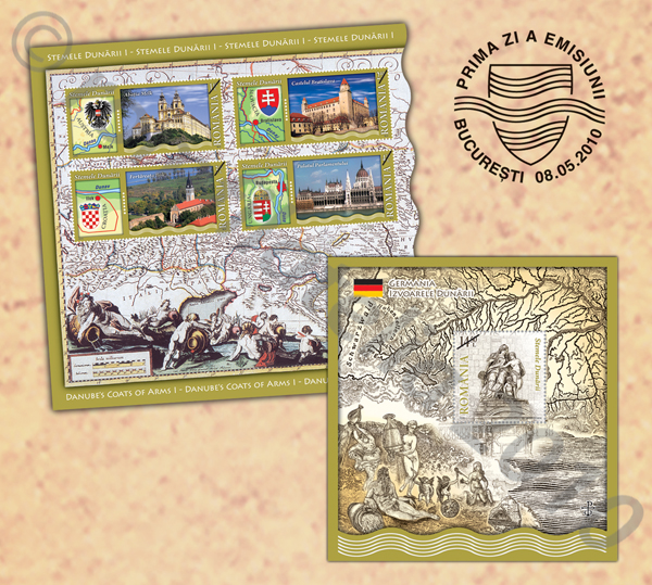 Poate şi de aceea, Romfilatelia dedicã marelui fluviu o primã emisiune de mãrci poştale dintr-o serie intitulatã „Stemele Dunãrii“.