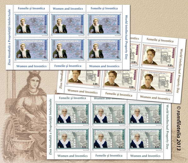 Pentru a conferi un mod aparte de abordare a acestei tematici pe timbrele poştale, Romfilatelia ilustreazã trei personalitãţi feminine şi invenţiile lor sub titulatura Femeile şi Inventica.