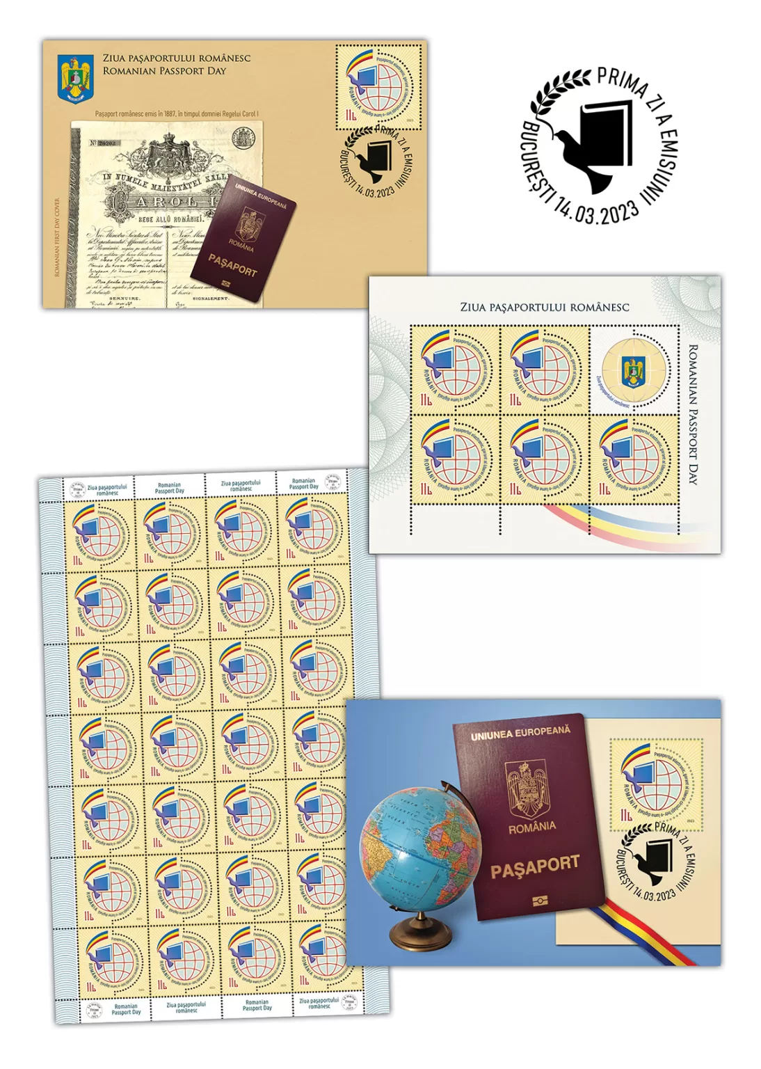 Romfilatelia will introduce into circulation on Tuesday, March 14th, the postage stamps issue entitled Romanian Passport Day, consisting of a stamp with the face value of Lei 11, a First Day Cover and a maxicard for maximaphily enthusiasts.