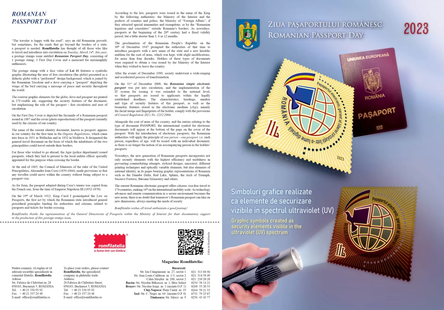Romfilatelia thanks the representatives of the General Directorate of Passports within the Ministry of Interior for their documentary support in the development of this postage stamps issue.