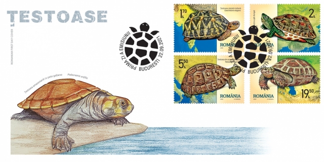 The postage stamps issue “Turtles” will be available on Wednesday, September 22nd, 2021, in Romfilatelia’s shops network in Bucharest, Bacau, Brasov, Cluj-Napoca, Iasi and Timisoara and online on https://romfilatelia.ro/store/.