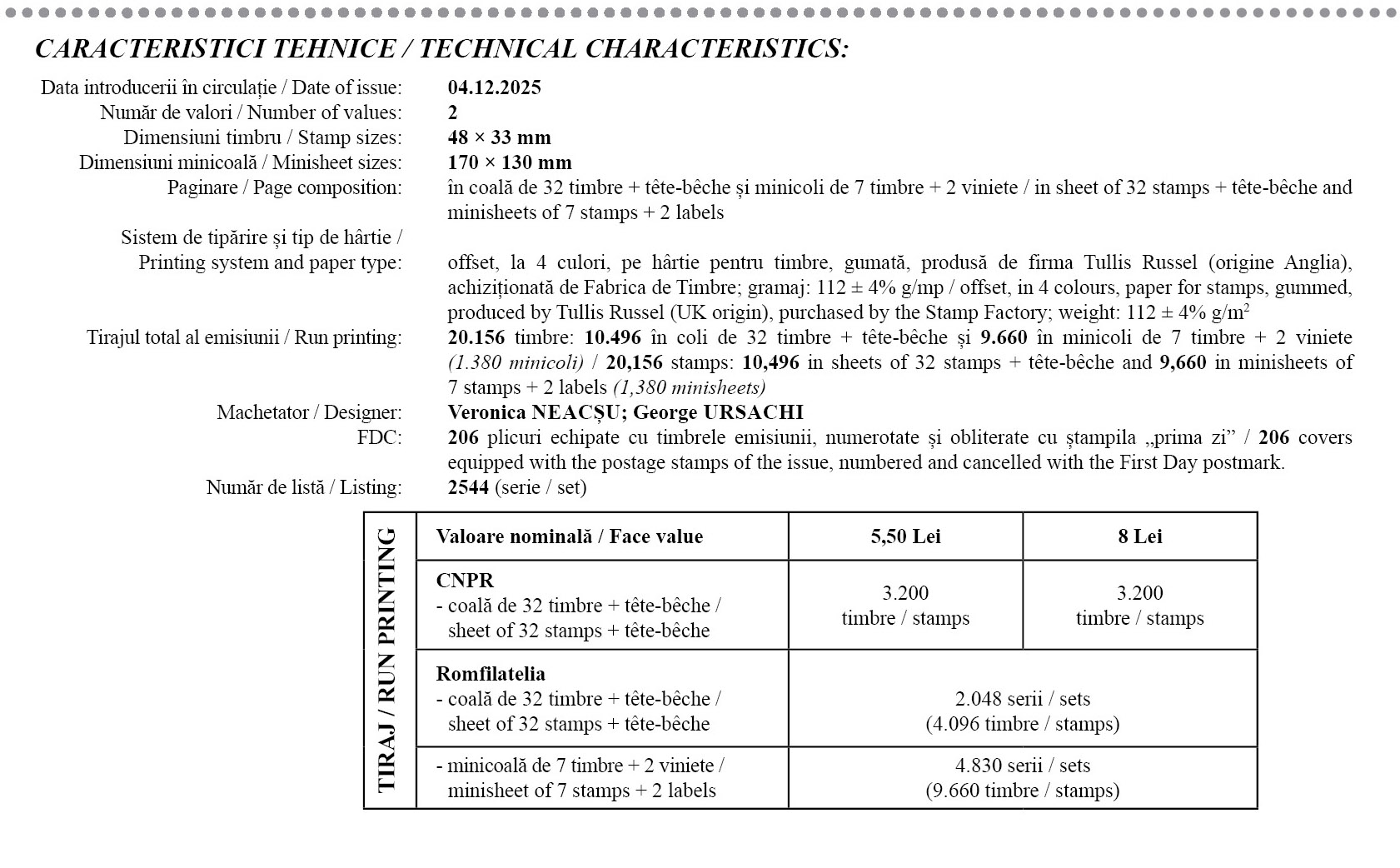 Romfilatelia and Romanian Post introduce into circulation on Thursday, December 4th this year, the stamp issue ‘WINTER’S JOYS’. The components of the issue – two postage stamps and a First Day Cover – depict in their images the characteristic atmosphere of December, a month in which the season of snow, school holidays, and the anticipation of gifts come together in an experience where optimism and joy are felt more than ever.
