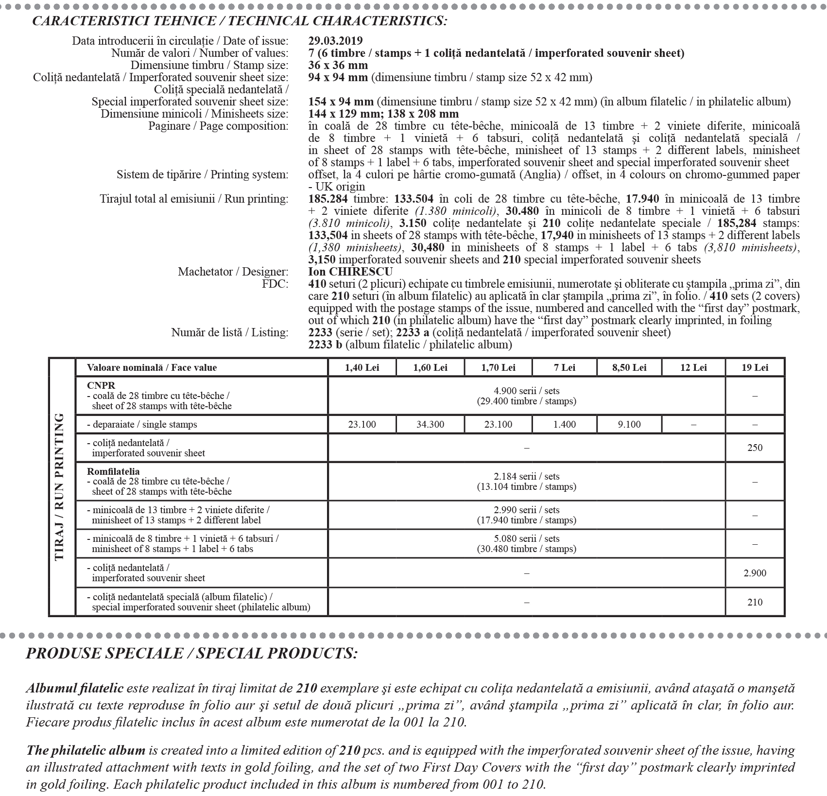 Suportul potcoavă este reprezentat pe timbrul cu valoarea nominală de 12,00 lei și pe timbrul coliței nedantelate a emisiunii de mărci poștale, cu valoarea nominală de 19,00 lei.