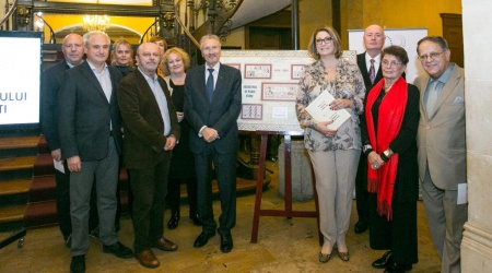 În final, directorul general Romfilatelia a invitat personalitățile prezente să dezvelească și să semneze panoul filatelic aniversar.