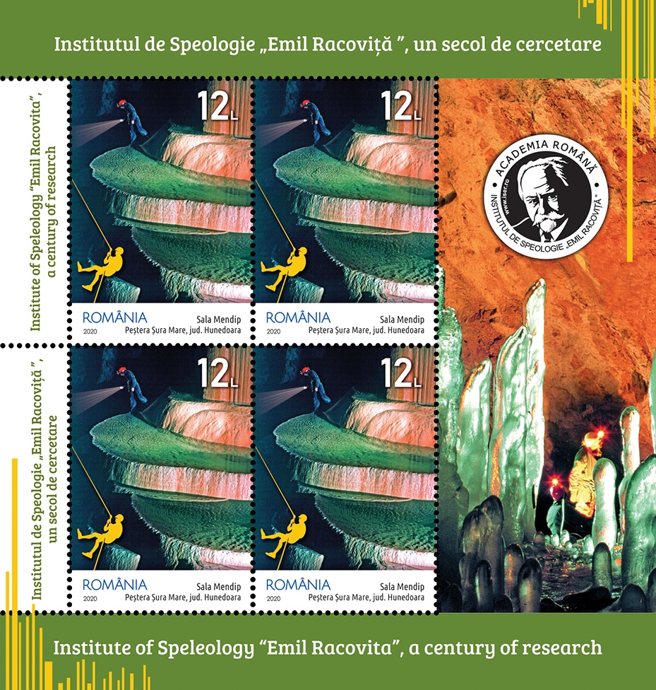 Pentru a onora aniversarea centenară a unui renumit Institut aflat sub egida Academiei Române, Romfilatelia introduce în circulație în data de joi, 18 iunie 2020, emisiunea de mărci poștale Institutul de Speologie „Emil Racoviță”, un secol de cercetare.