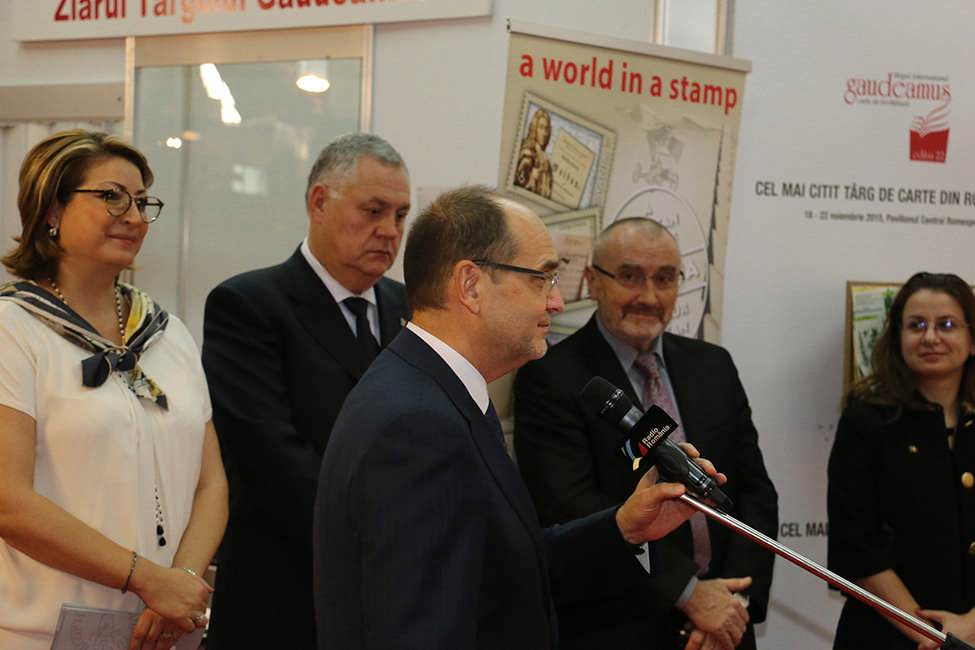 Moderatorul evenimentului a fost doamna Cristina Popescu, director general Romfilatelia, care a iniţiat seria alocuţiunilor, afirmând că „timbrul este un mijloc de educaţie în rândul tinerilor şi al populaţiei, fiind mereu alături la cele mai importante evenimente.”