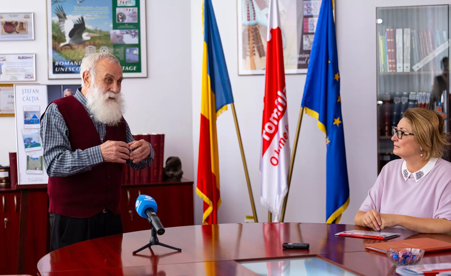Vizibil emoționat, Maestrul Ștefan Câlția a mulțumit Romfilatelia pentru emisiune, fiind onorat să apară pe timbre:
