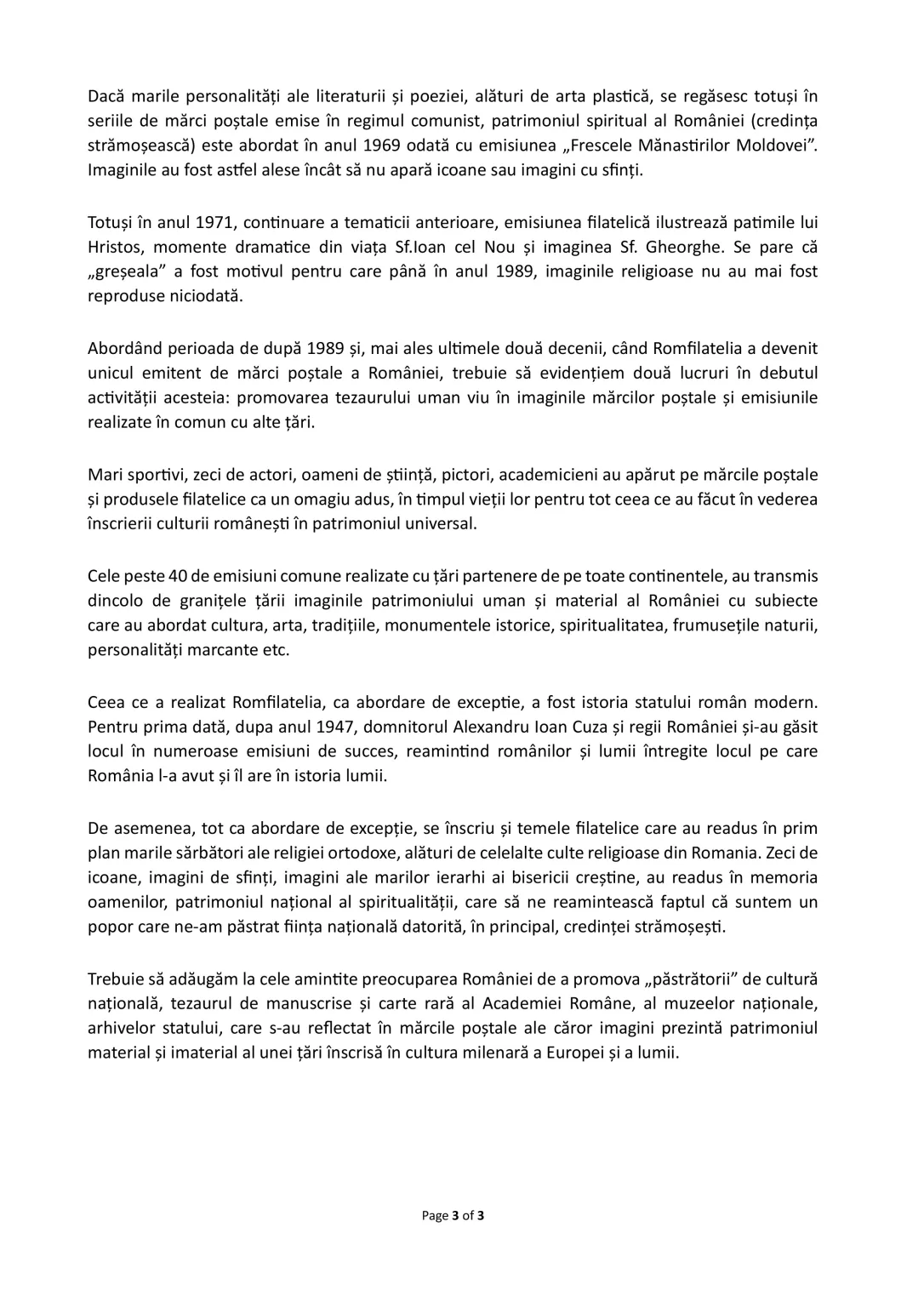 Joi, 16 noiembrie a.c., am avut bucuria de a prezenta importanța și rolul timbrului, adevărat ambasador itinerant, instrument de diplomație publică, partener al celor mai importante evenimente naționale și internaționale, cu ocazia lansării volumului „Identitate și cultură. National.European.Universal”, al 8-lea din seria Caiete Documentare Club Romania. La pag. 665 este expus articolul „Marca poștală, promotoare a patrimoniului cultural național”, care reamintește rolul timbrului de simbol național, prin implicare, seriozitate si eficiență.