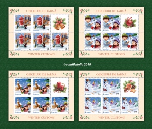 Emisiunea de mărci poștale Obiceiuri de iarnă este alcătuită din 4 timbre, care ilustrează într-o interpretare ludică, dar sugestivă, obiceiuri specifice sezonului, astfel: