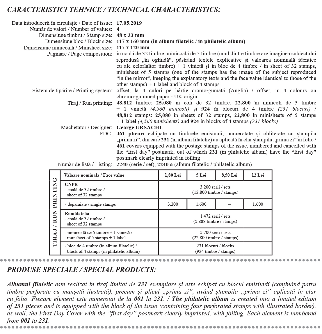 Romfilatelia mulţumeşte Muzeului Național de Istorie Naturală „Grigore Antipa” pentru sprijinul documentar acordat la realizarea acestei emisiuni de mărci poştale.
