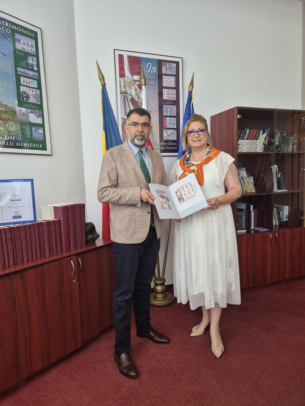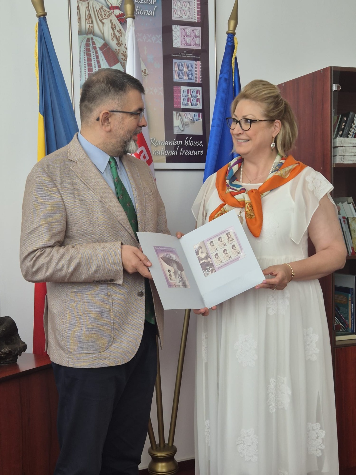 Domnul senator Robert Cazanciuc a apreciat timbrele românești, experiența și implicarea Romfilatelia în proiectele dedicate valorilor culturale, istorice și educative.