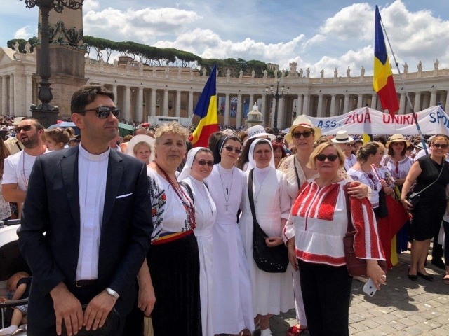 În aceeași zi, Romfilatelia și Muzeul Național al Satului „Dimitrie Gusti” s-au alăturat comunității romanești din Italia, prezentă în Piața San Pietro de la Vatican în costume tradiționale, la slujba Angelicus susținută de Papa Francisc, care a binecuvântat grupul de români prezent.