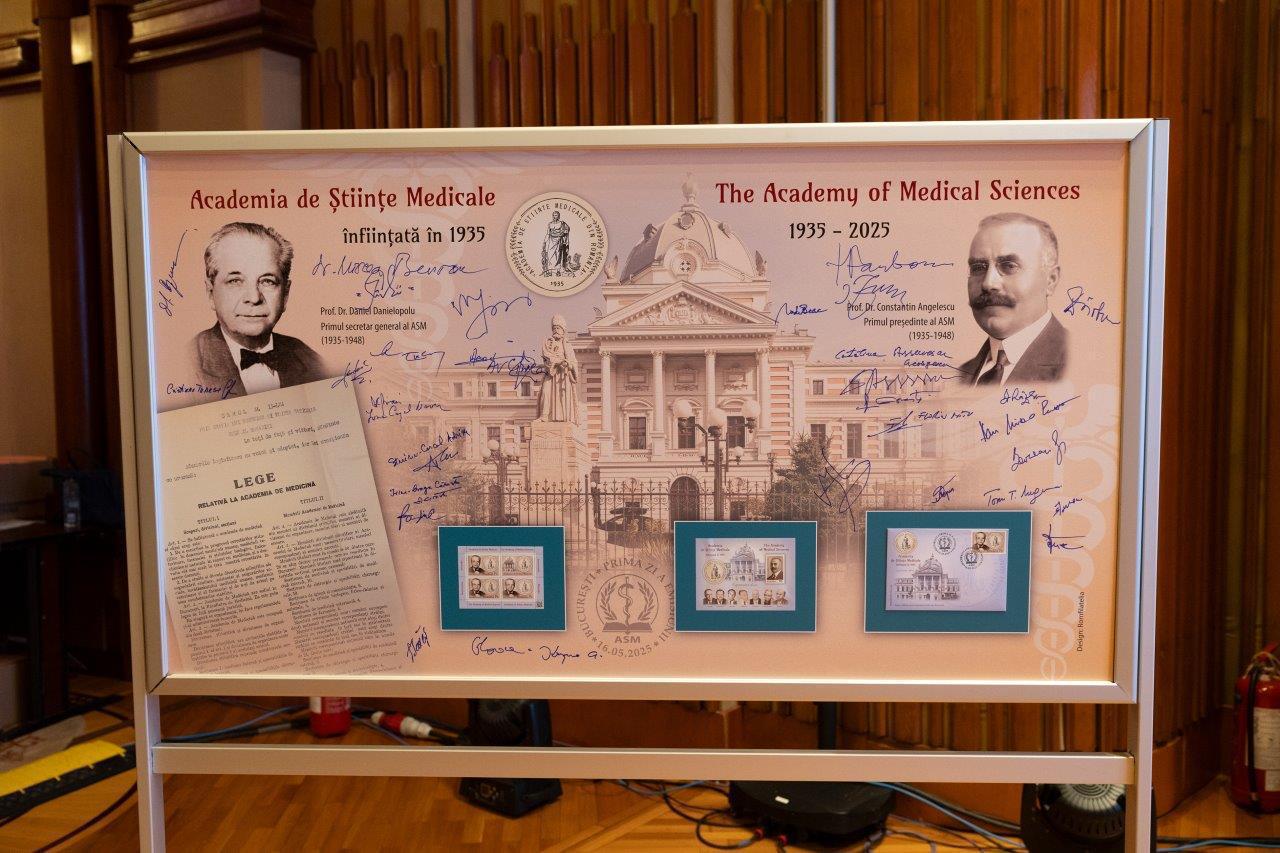 Cu prilejul celebrării unei instituții care reprezintă valorile practicii și cercetării medicale românești, o emisiune filatelică „Aniversări. Academia de Științe Medicale”, introdusă în circulație de Romfilatelia, vineri, 16 mai a.c., marchează împlinirea a 90 de ani de la înființarea unui for științific de înaltă ținută și autoritate, component activ al patrimoniului internațional al științelor medicale.