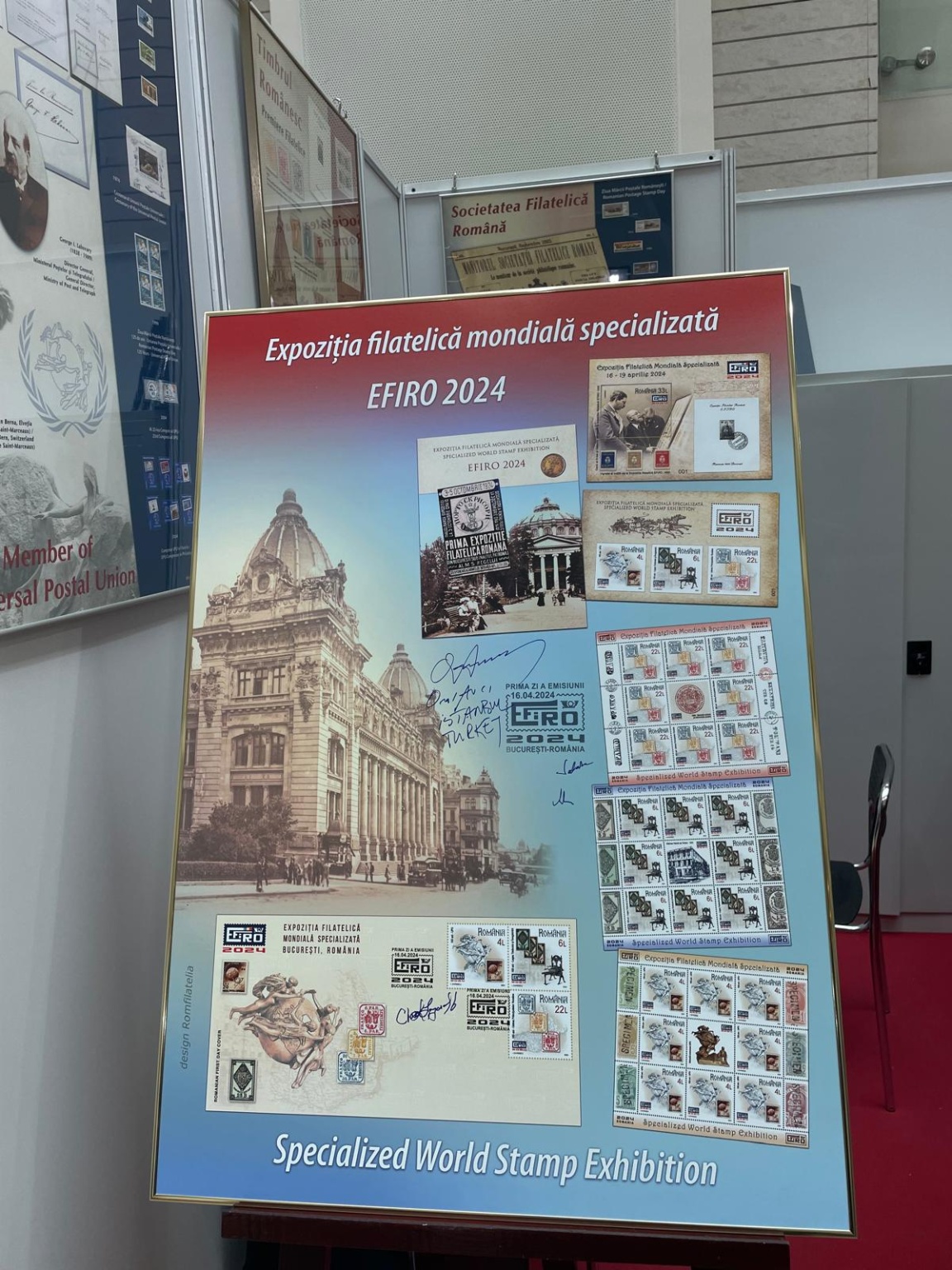 Am avut prilejul de a admira panourile filatelice ale administrațiilor poștale membre ale Uniunii Poștale Universale, participante la cea de-a 19-a clasă de competiție organizată de colegii de la Asociația Mondială pentru Dezvoltarea Filateliei (WADP) din cadrul UPU, cea mai veche organizație mondială. Amintim aici: România, prin Romfilatelia, Argentina, Azerbaijan, Poșta Croată Mostar, Republica Srpska, Bosnia și Herțegovina, Belarus, Brazilia, Chile, CN – Macao, R.P. Chineză, Cehia, Franța, Grecia, Malta, Mexic, Maroc, Oman, Palestina, Federația Rusă, Slovacia, Turcia, Emiratele Arabe Unite, ONU (New York).