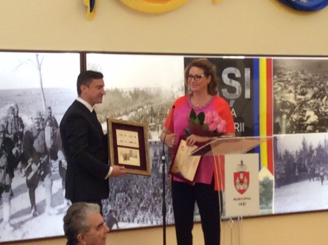 Pentru activitățile și proiectele dedicate atât orașului Iași cât și Centenarului, doamna Cristina Popescu, Director General Romfilatelia a primit premiul Centenar din partea domnului Primar Mihai Chirică.