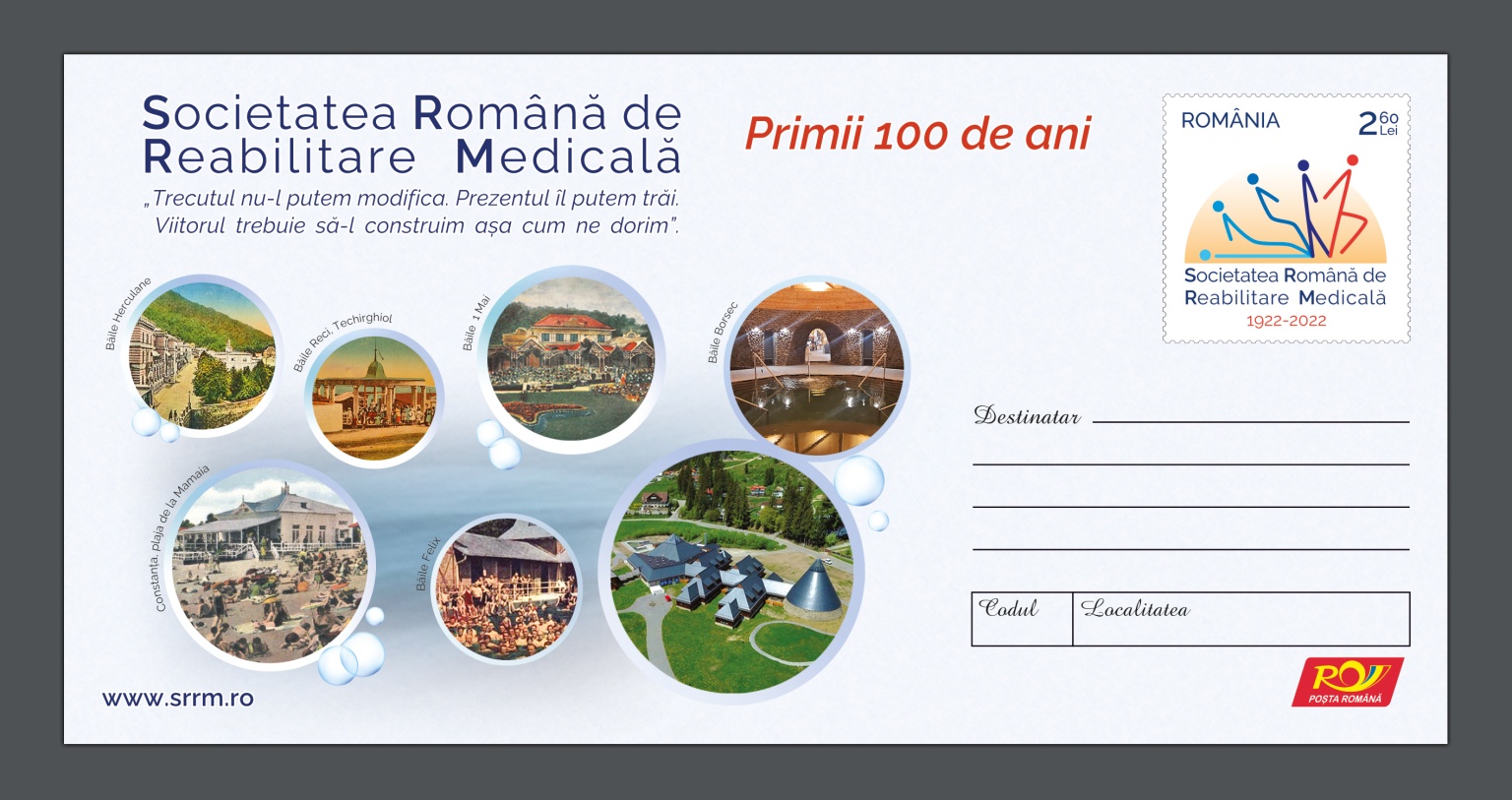 Romfilatelia, societatea unică abilitată de Guvernul României în emiterea mărcilor poștale românești, s-a alăturat aniversării centenare a Societății Române de Reabilitare Medicală prin realizarea unui întreg poștal cu timbru marcă fixă, lansat în cadrul celui de-al 45-lea Congres National Anual de Reabilitare Medicală.