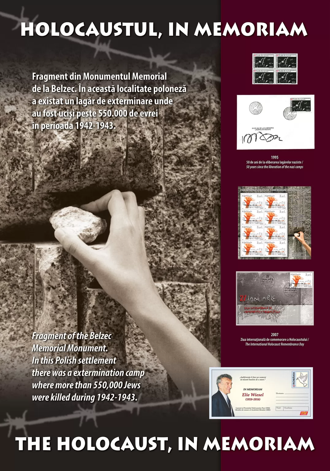 Romfilatelia, în misiunea sa de promotor al valorilor universale, a promovat, de-a lungul timpului, valorile spirituale evreiești și a omagiat victimele Holocaustului prin emisiuni de mărci poștale și produse filatelice, cu promisiunea că va continua să fie alături de toate momentele importante ale comunității evreiești.